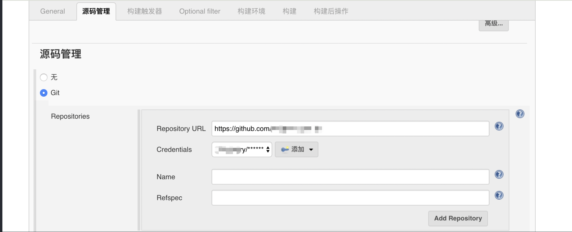 源代码->git->https://github.com/wkvictory/weapp.git->添加权限【git 的用户名和密码】->构建触发器(Generic Webhook Trigger)->应用保存