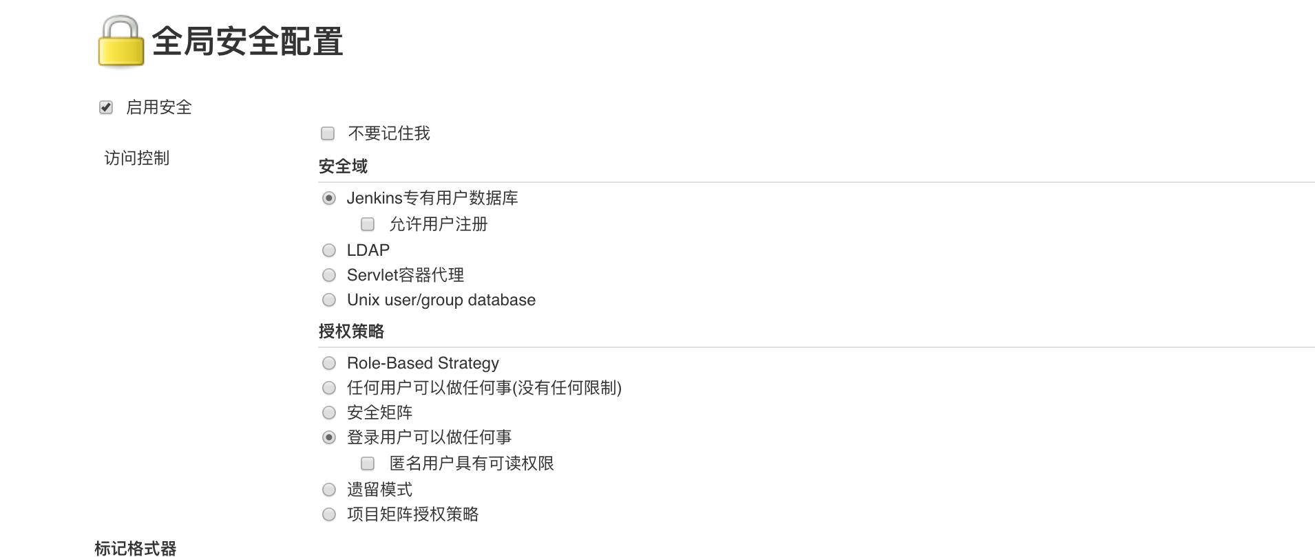 再次访问Jenkins后,首先要设置登录认证。