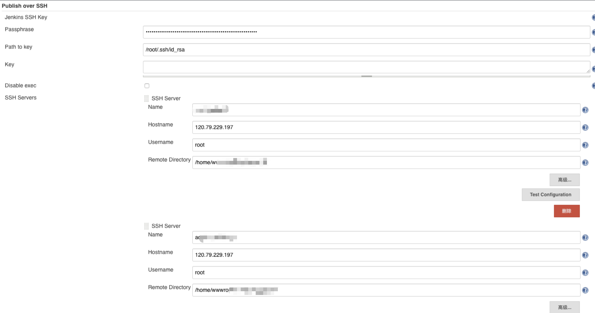 系统管理->系统设置->Publish over SSH